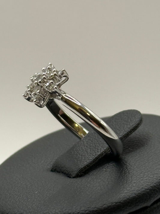 Bague en or blanc sertie de diamants en motif floral – Taille 50