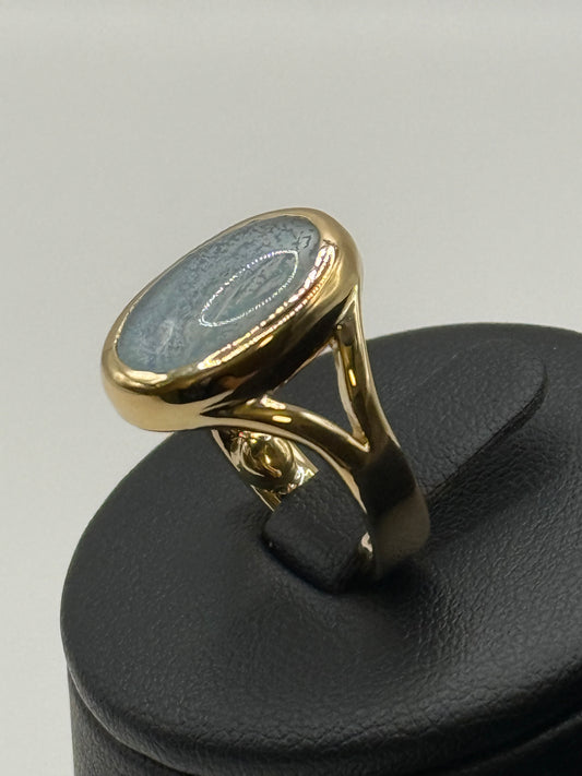 Bague en or jaune 18 carats et labradorite cabochon