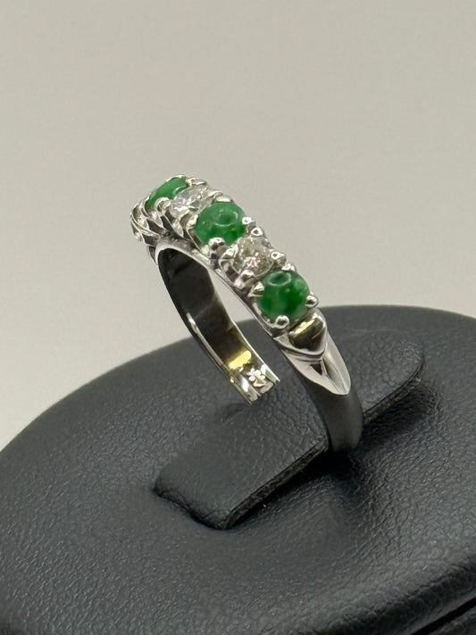 Bague en or blanc ornée de deux fleurs serties de diamants et de saphirs verts – Taille 50