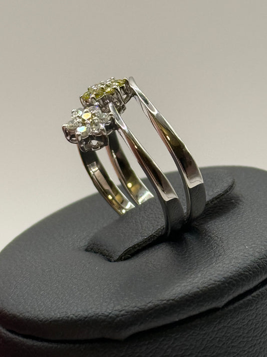 Bague en or blanc sertie de diamants en motif floral – Taille 50