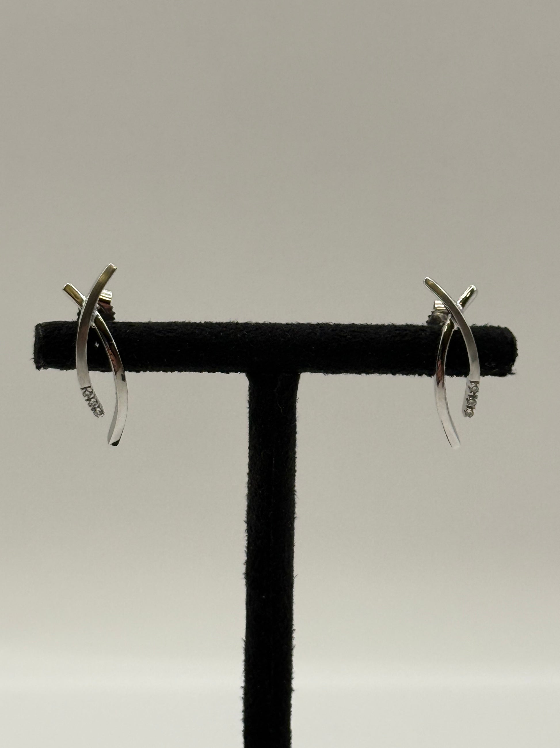 Modernes et raffinées, ces boucles d’oreilles en or blanc présentent un design croisé tout en finesse, rehaussé de diamants délicatement sertis à la base. Leur forme fluide et élancée met en valeur le visage avec élégance et légèreté. Un bijou contemporain, parfait pour allier discrétion et éclat au quotidien.