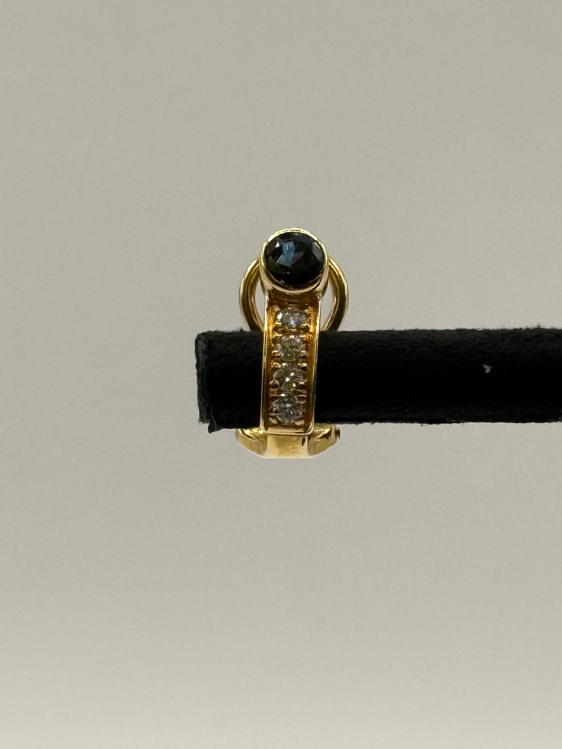 Ces boucles d’oreilles en or jaune associent la profondeur du saphir bleu à la brillance des diamants pour un contraste saisissant et élégant. Le saphir, placé en haut de chaque boucle, attire la lumière et sublime le visage, tandis que les diamants ajoutent une touche de raffinement. Une création classique et intemporelle, parfaite pour sublimer toutes les occasions.