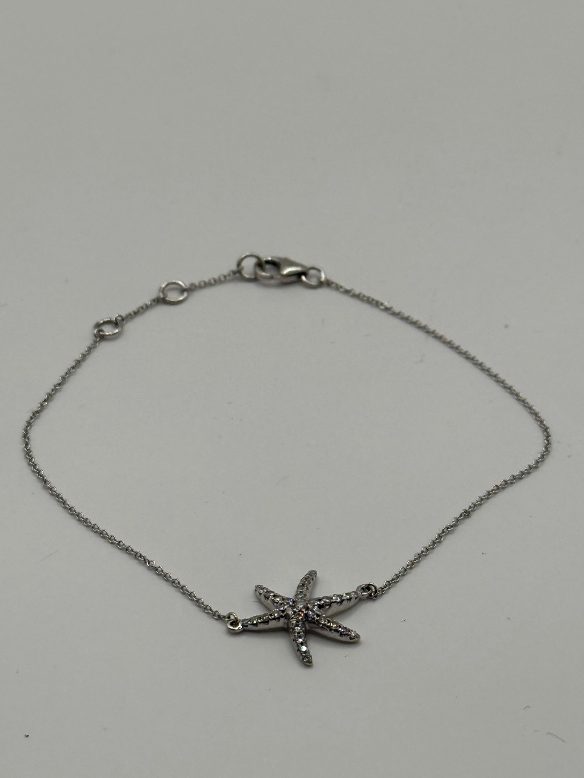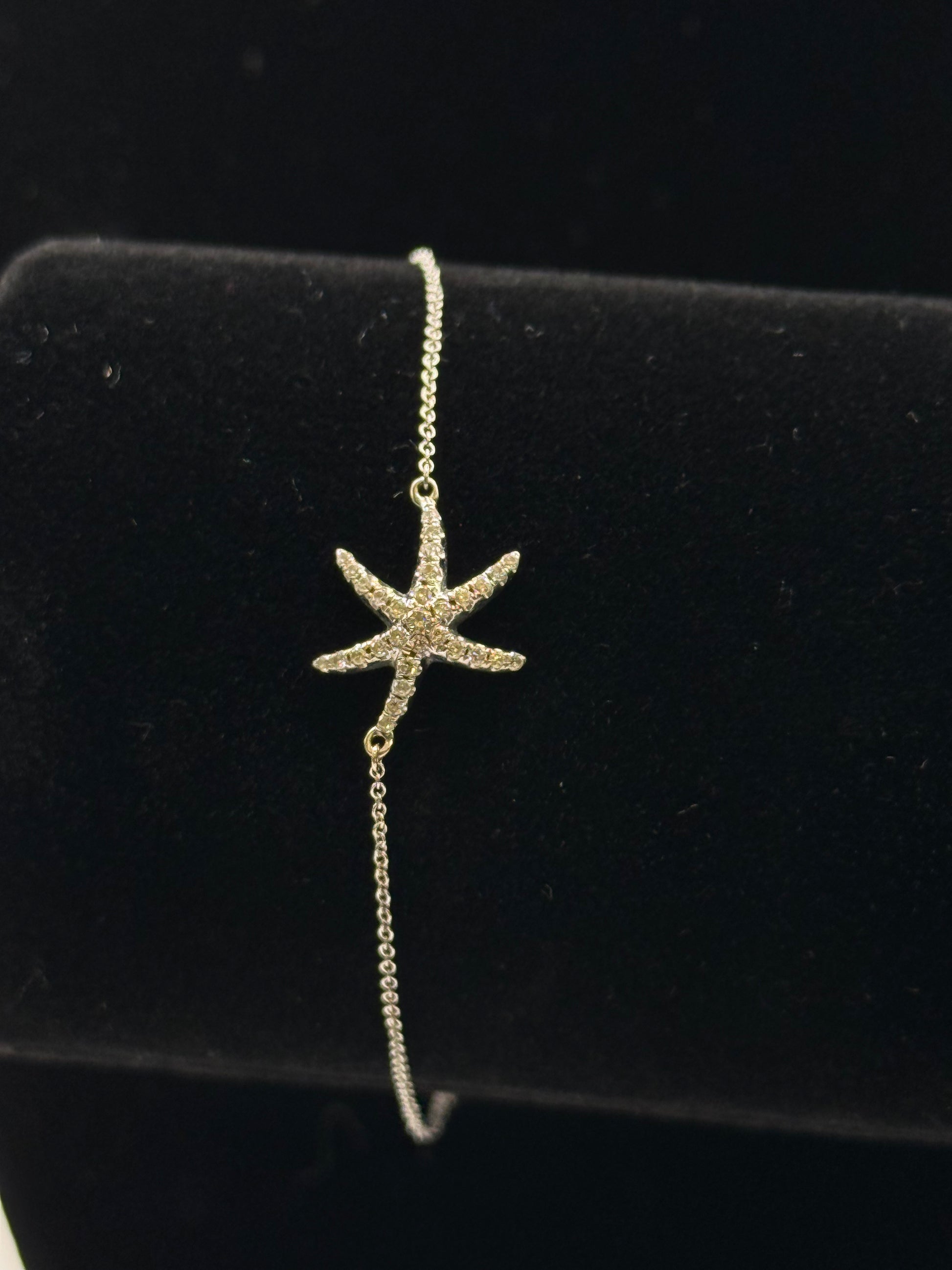 Charmant bracelet en or blanc 18k orné d’une délicate étoile de mer pavée de 31 diamants, pour un total de 0.17 carat, qualité SI3 et couleur H.