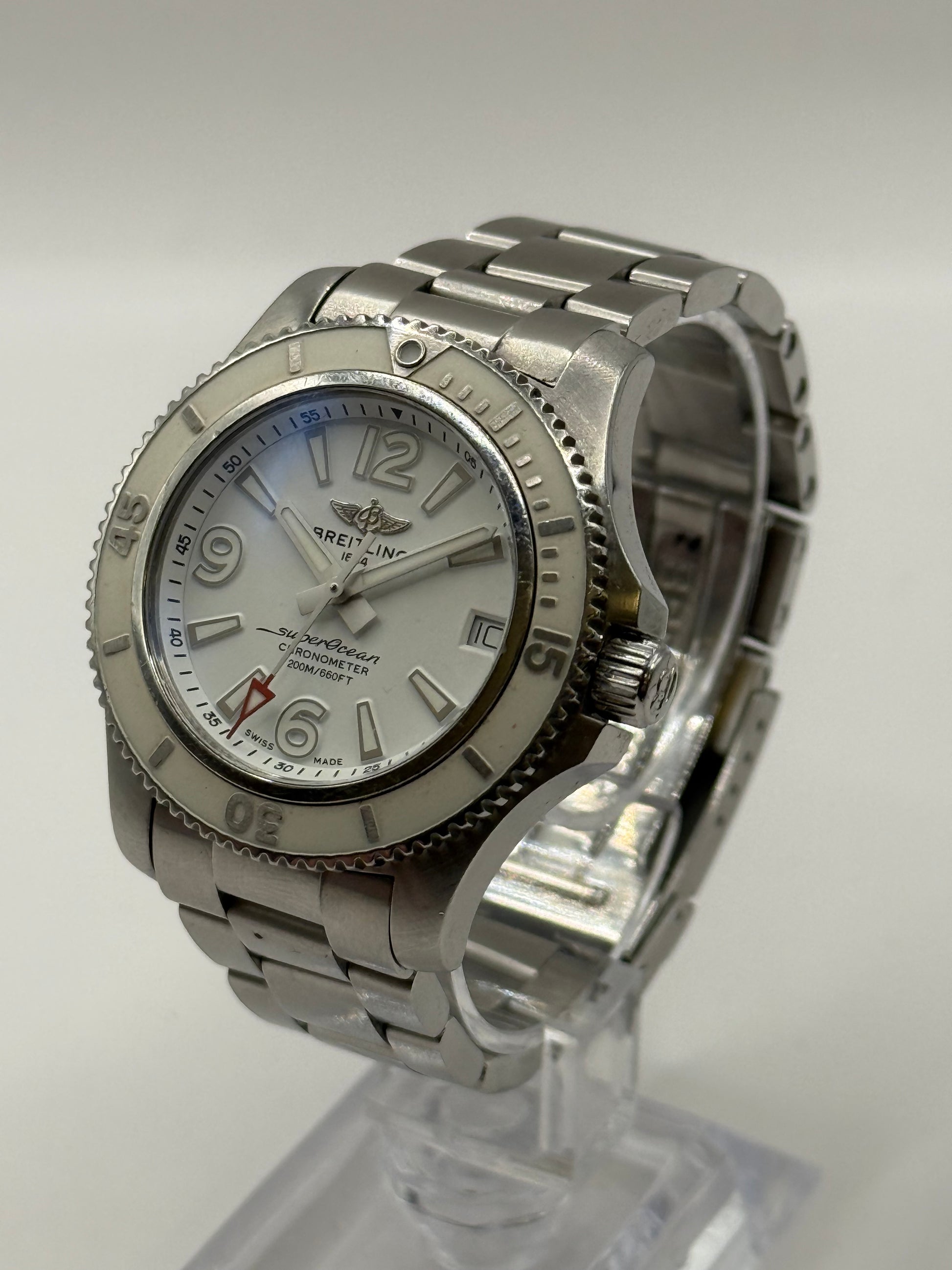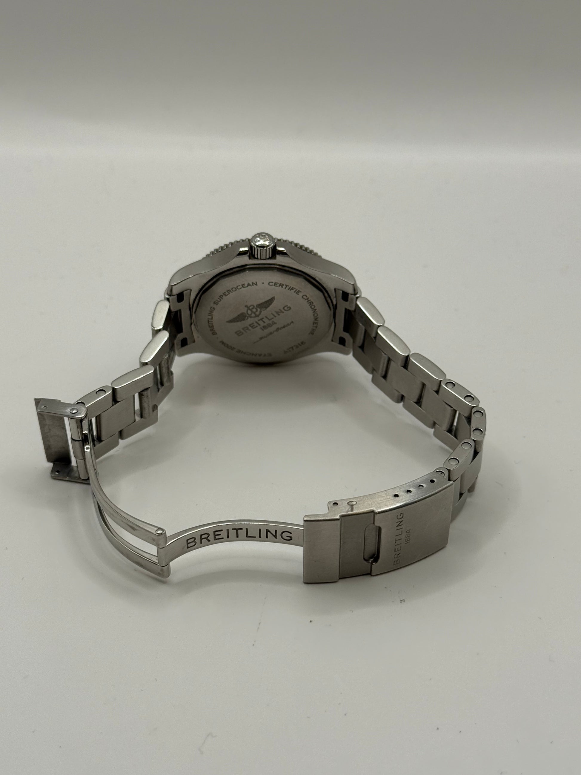Cette Breitling Superocean de 36 mm incarne l’esprit sportif de la Maison tout en restant élégante et polyvalente. Son boîtier en acier abrite un cadran lumineux offrant une excellente lisibilité, complété par une lunette unidirectionnelle typique des montres de plongée. Animée par un mouvement automatique fiable, elle bénéficie d’une étanchéité de 200 m, ce qui en fait une montre idéale autant pour le quotidien que pour les activités nautiques.