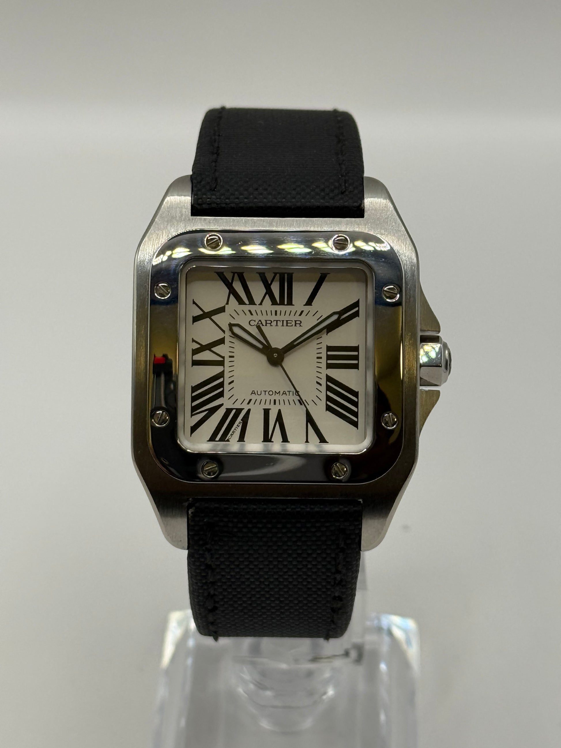 La Cartier Santos 100 incarne l’audace et l’élégance intemporelle de la maison Cartier. Avec son boîtier carré en acier aux lignes affirmées et ses vis apparentes emblématiques, elle impose immédiatement sa présence au poignet tout en conservant une sophistication parfaitement maîtrisée.