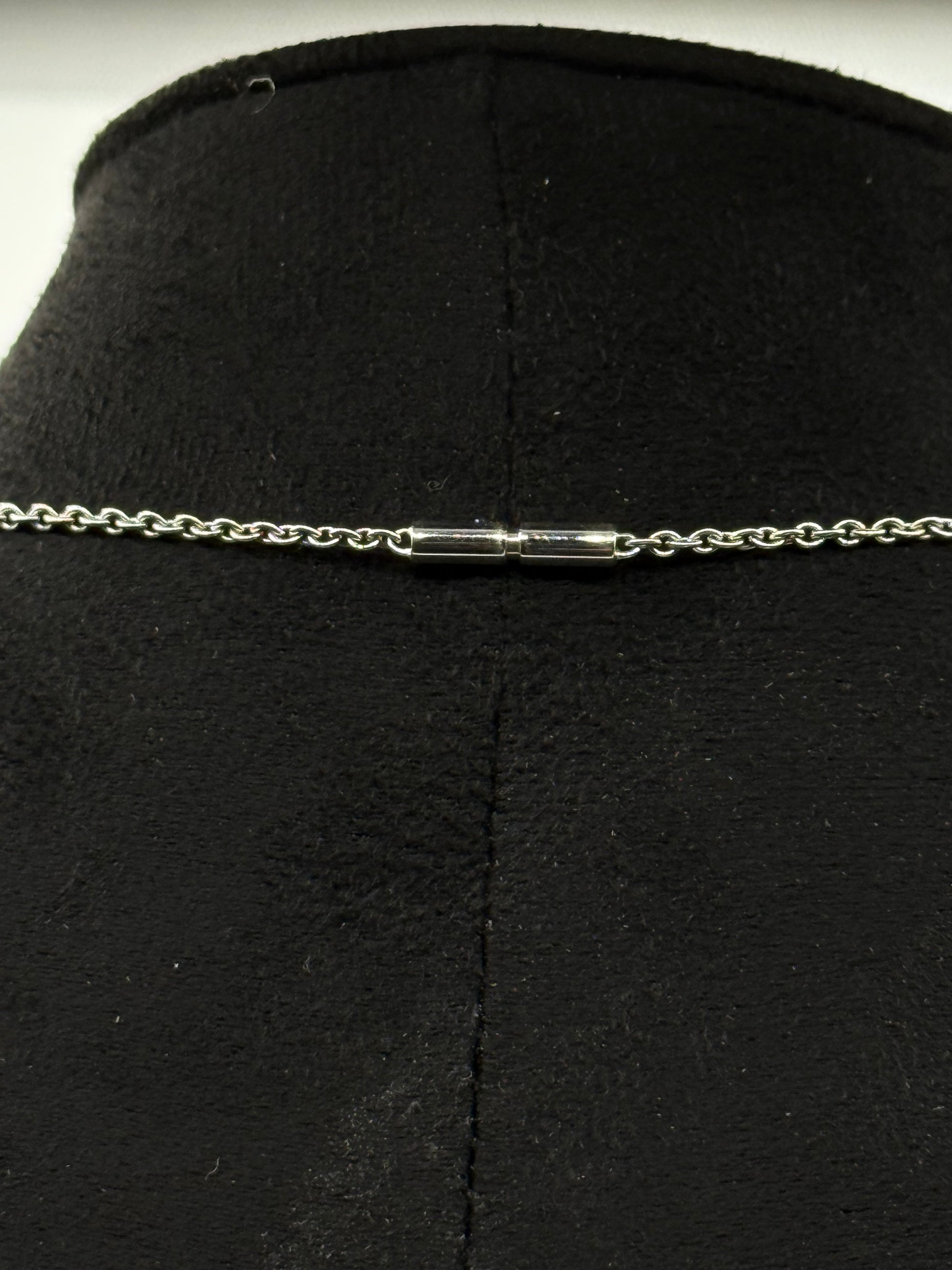Ce collier en or blanc séduit par son pendentif en forme d’étoile, symbole de lumière et d’élégance, orné en son centre d’un diamant scintillant. Sa chaîne fine et délicate met en valeur la brillance du pendentif, offrant un style à la fois moderne et intemporel. Un bijou discret et raffiné, idéal pour illuminer le quotidien.
