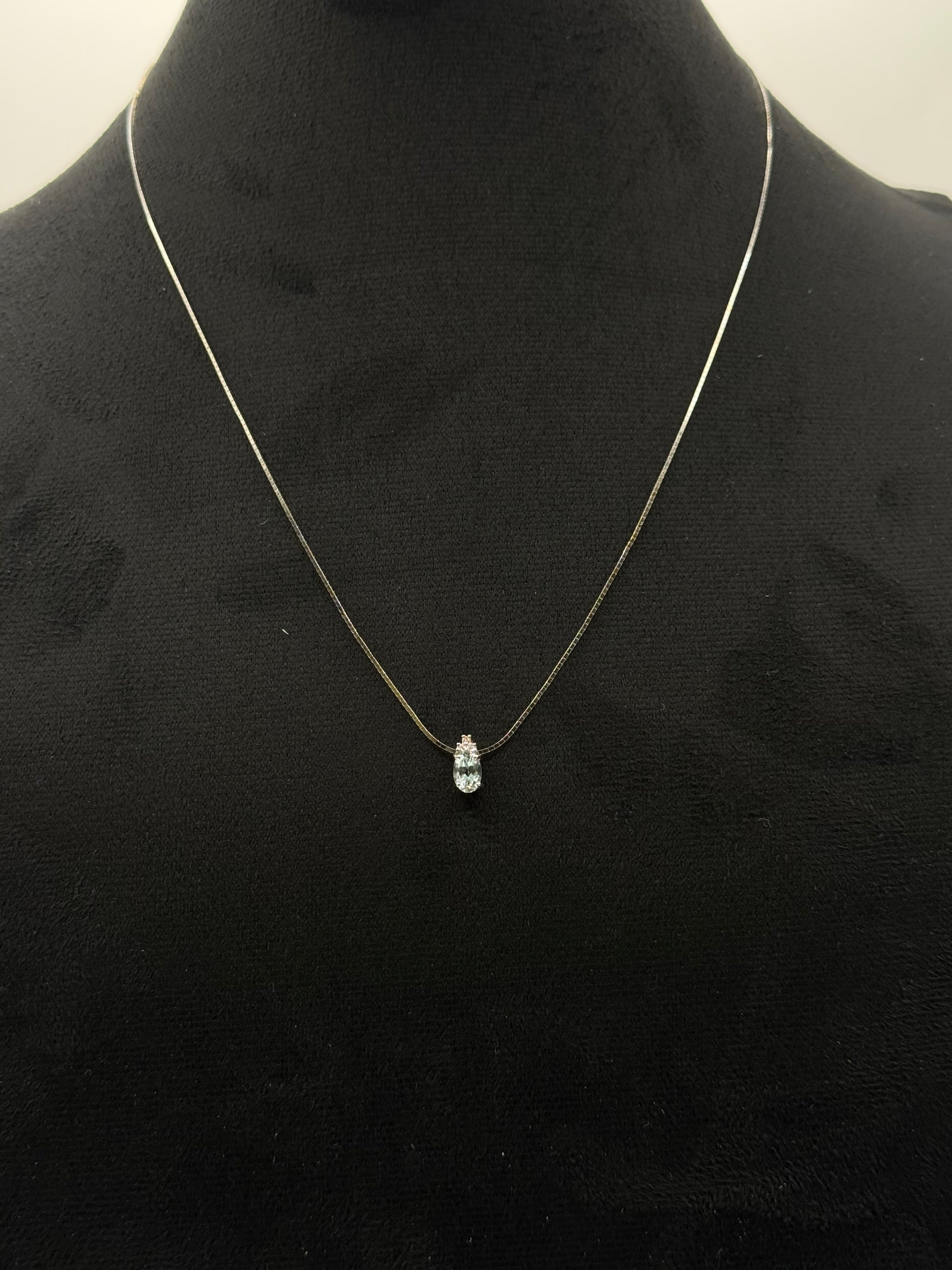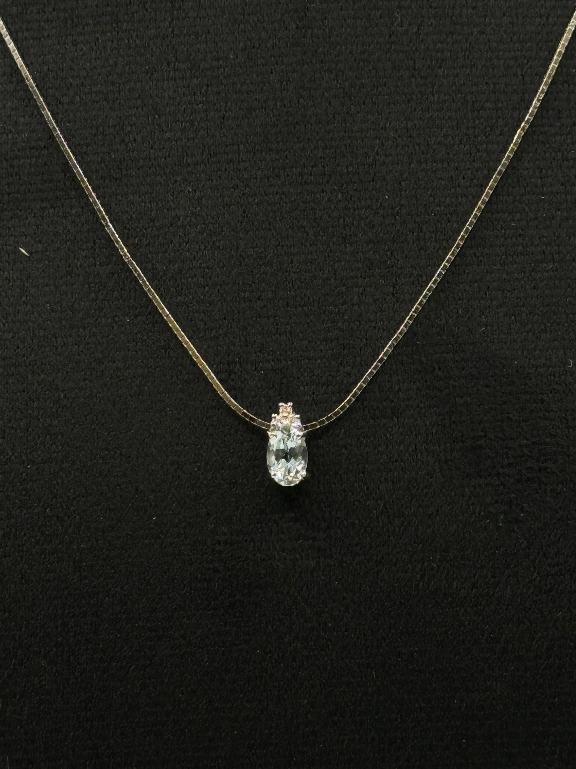 Collier en or blanc orné d’une aigue-marine taille poire