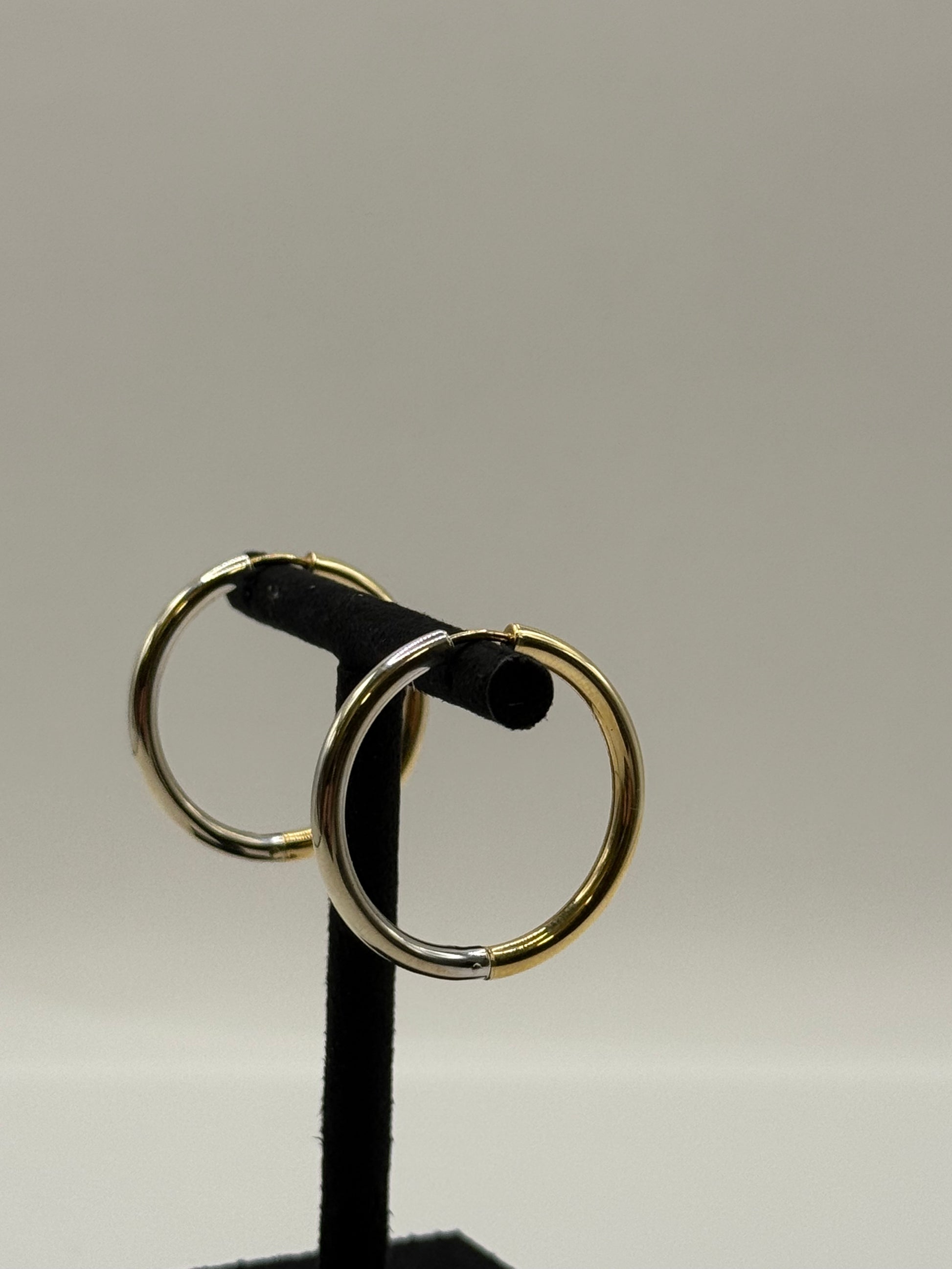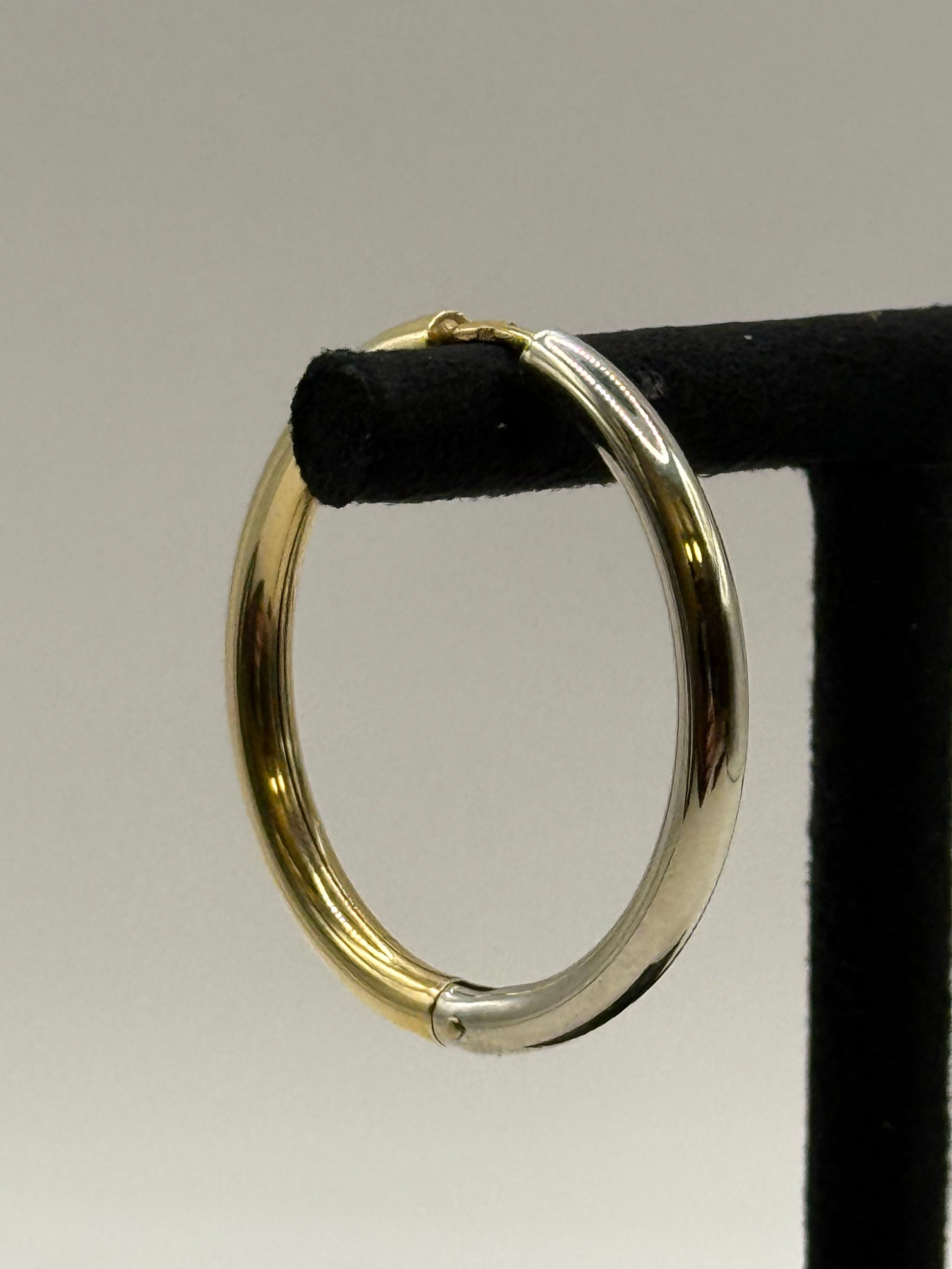 Ces élégantes créoles marient avec harmonie l’or jaune et l’or blanc pour un contraste lumineux et raffiné. Leur design épuré et leur belle dimension en font un bijou intemporel, facile à porter au quotidien tout en apportant une touche d’éclat sophistiqué. Un classique indémodable qui s’accorde avec tous les styles.