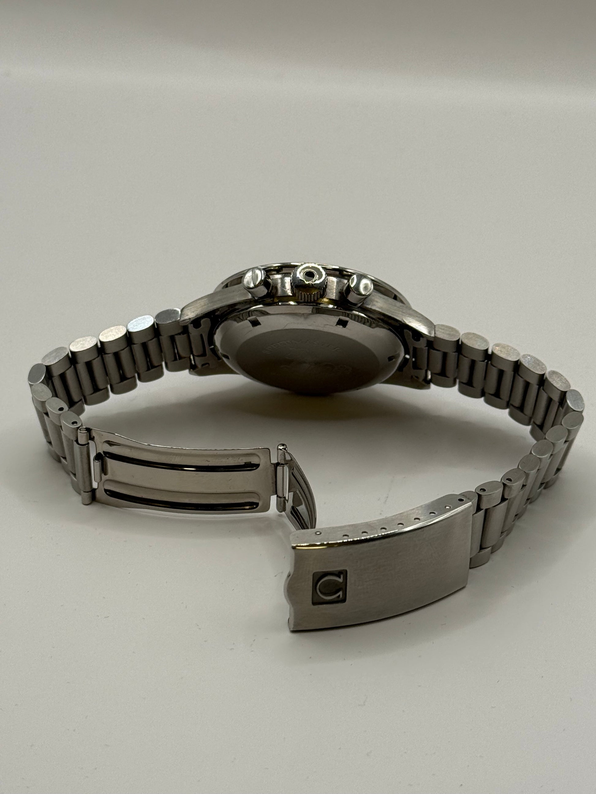 Boitier en acier de 42 mm et bracelet acier Omega avec boucle déployante. (le bracelet n’est pas d’époque )