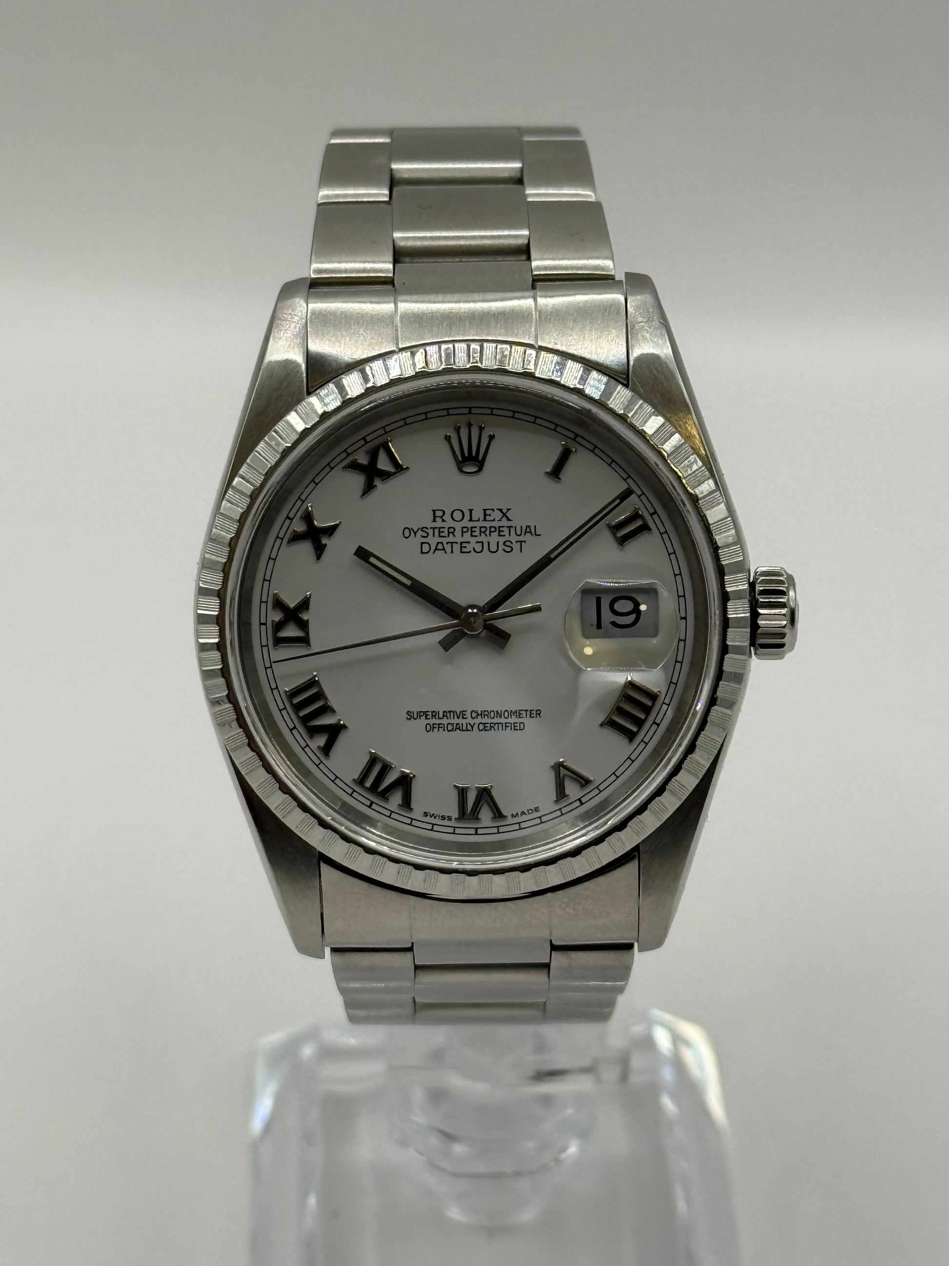 Rolex Datejust 36 mm réf. 16220 - Acier, Lunette Cannelée, Cadran Blanc Romain - Année 1991