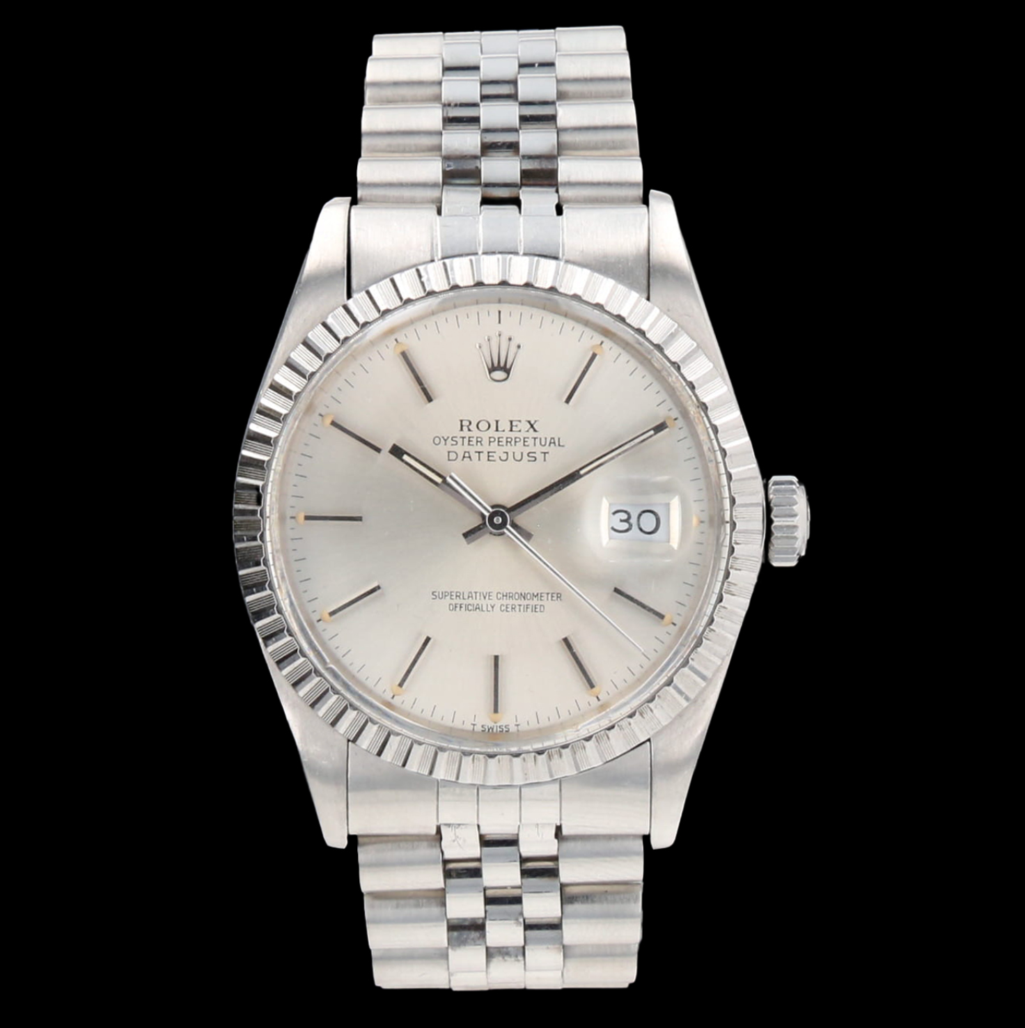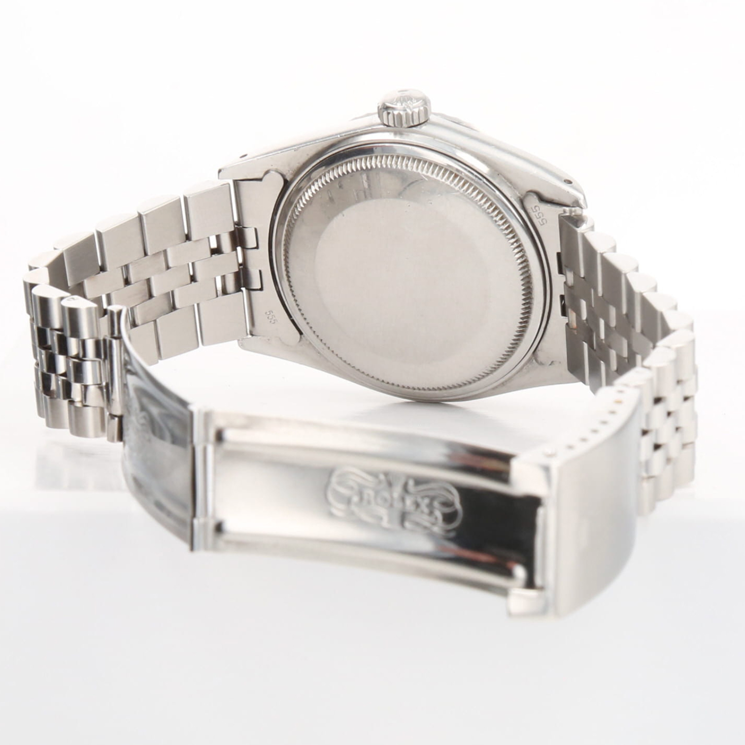 Montre mécanique à remontage automatique, offrant une réserve de marche de 40 heures et 26 rubis. Son boîtier en acier de 36 mm de diamètre est doté d'une lunette cannelée. Le bracelet Jubilé, également en acier, est doté d'une boucle déployante Rolex en acier.