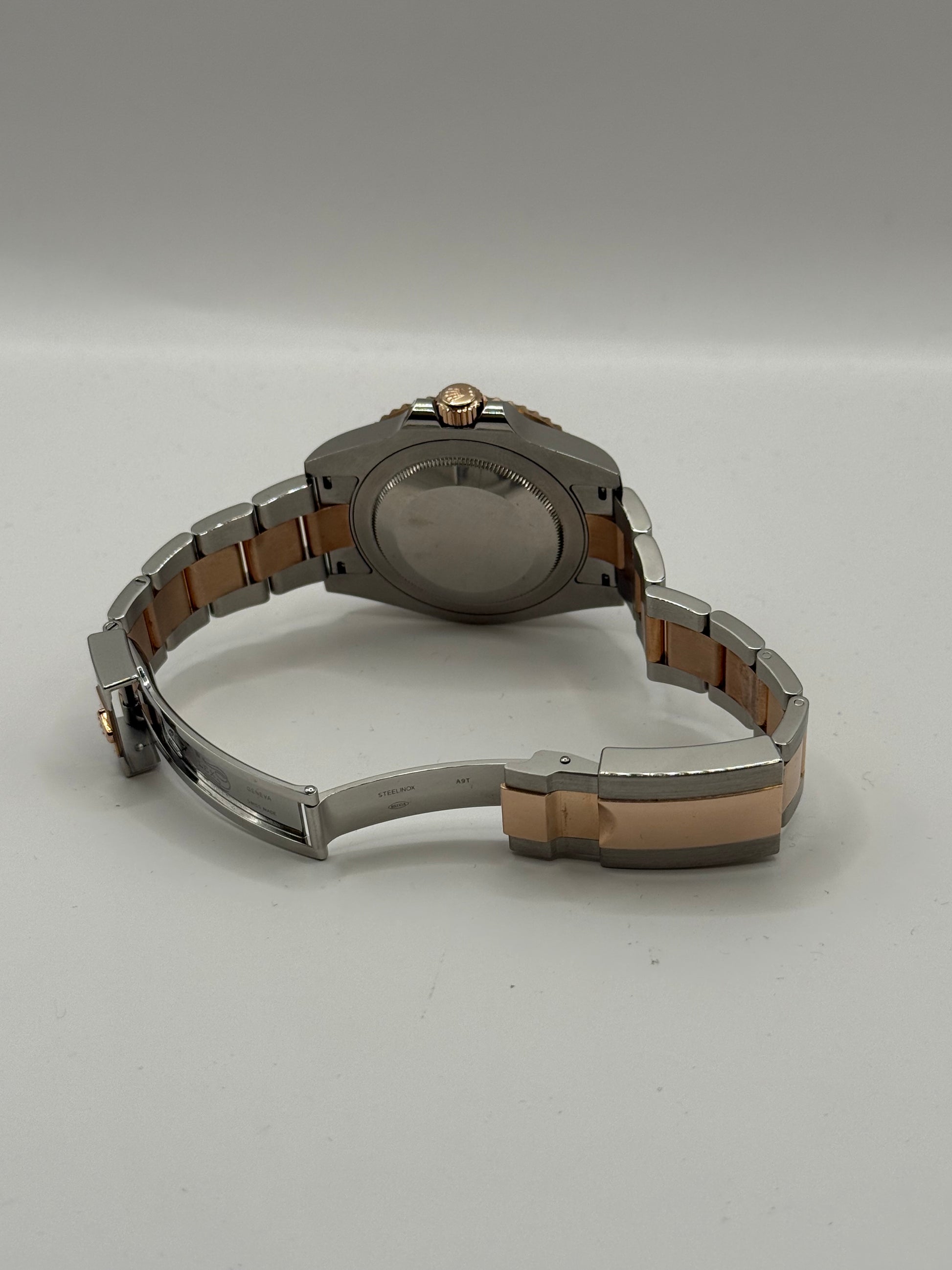 Le cadran noir laqué met en valeur les index et aiguilles en or Everose, tandis que l’aiguille GMT permet la lecture d’un second fuseau horaire. Animée par le calibre 3285, cette montre bénéficie d’une réserve de marche de 70 heures ainsi que de la technologie Chronergy offrant précision et performance accrues. Le bracelet Oyster bicolore, robuste et confortable, renforce l’esthétique luxueuse du modèle.