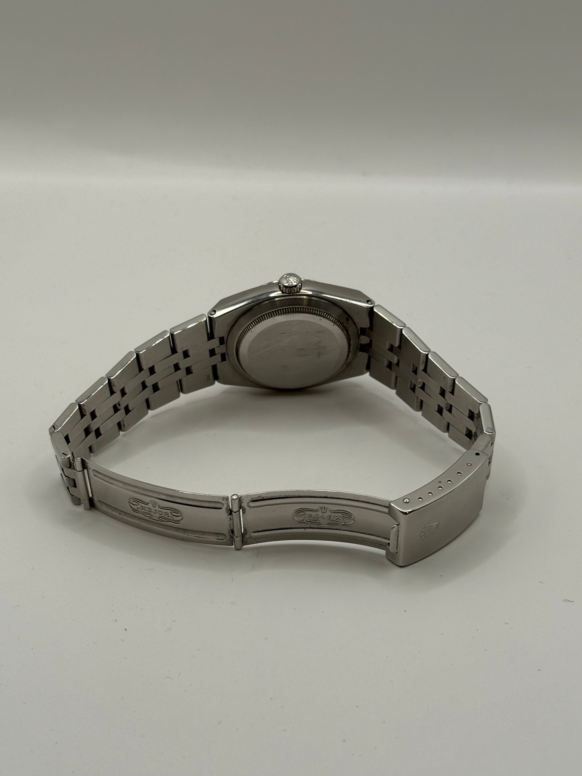 Cette montre est animée par le mouvement à quartz Rolex calibre 5035, certifié chronomètre, reconnu pour sa fiabilité et sa grande stabilité dans le temps. Elle est protégée par un verre saphir résistant aux rayures et dotée d’un bracelet Oyster intégré en acier inoxydable, à la fois robuste et confortable.